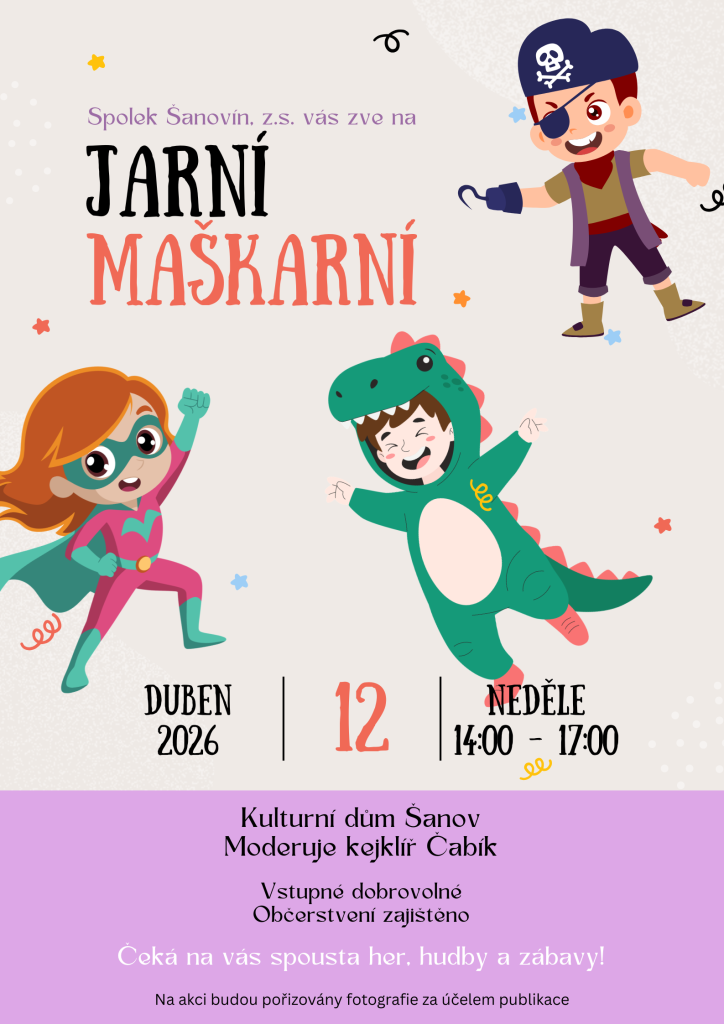 Dětský maškarní karneval za doprovodu kejklíře Čabíka.